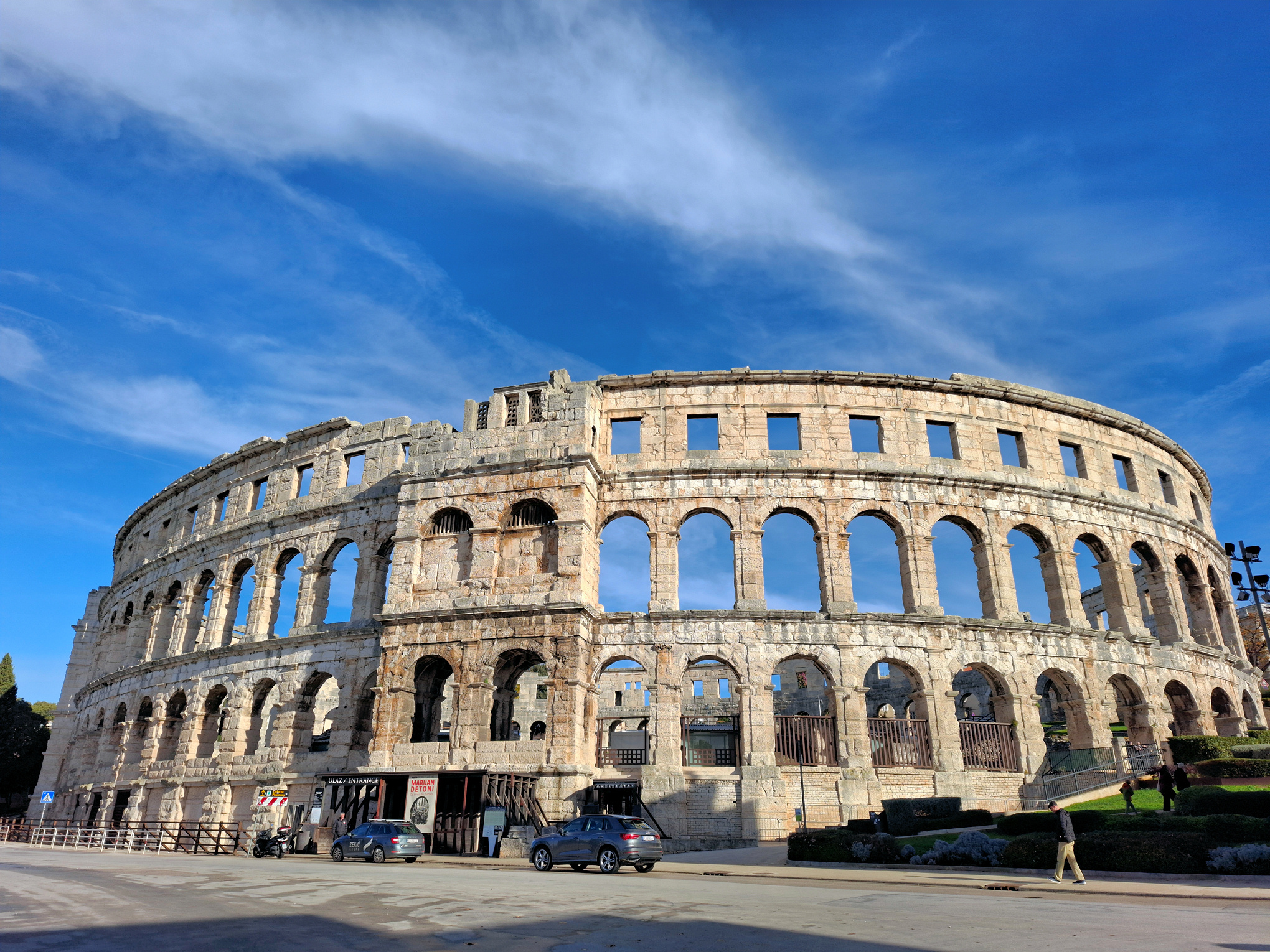 Right above the waterfront is the Pula Arena. It is a Roman amphitheatre that ranks among the six largest preserved Roman arenas in the world.