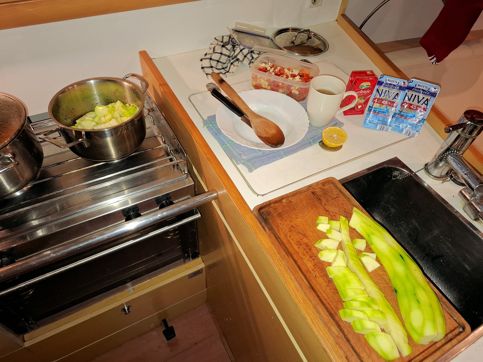 Plachty: hlavní - lazy bag, kosatka - rolfolk