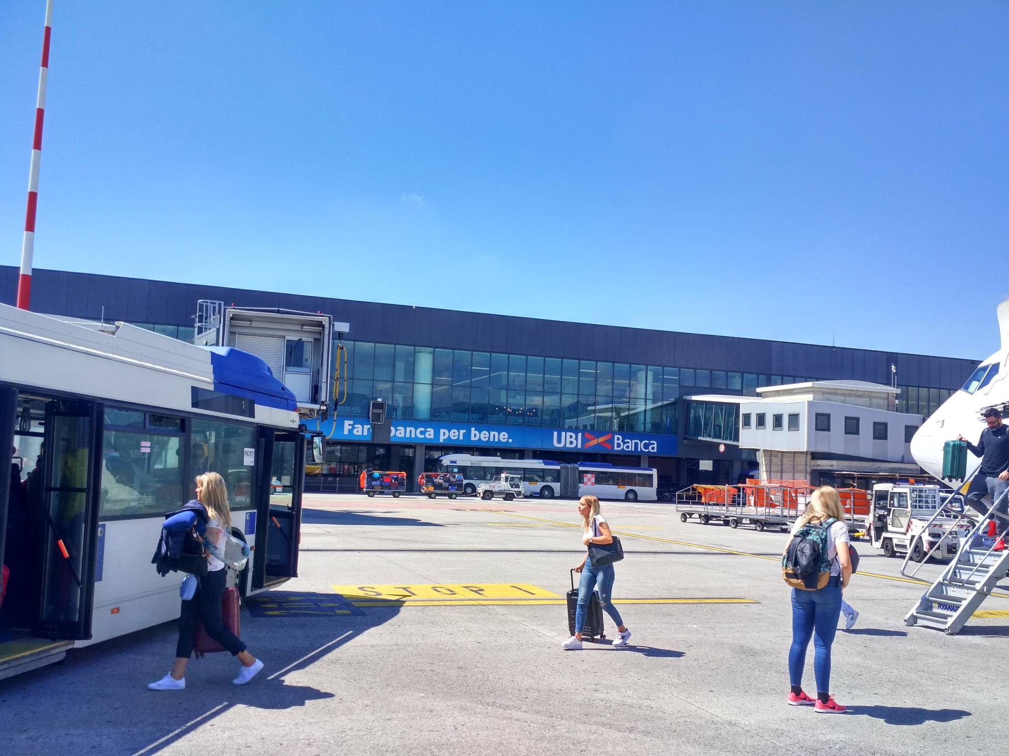 10:10 letadélkem Ryanair z Prahy do Milána resp. Bergama a v 15:55 dalším do Bari. Letěli jsme na čas a v 17:25 si to už šineme na nezbytné wc a pak rychle vyzvednout zamluvené auto...mno auto... :-)