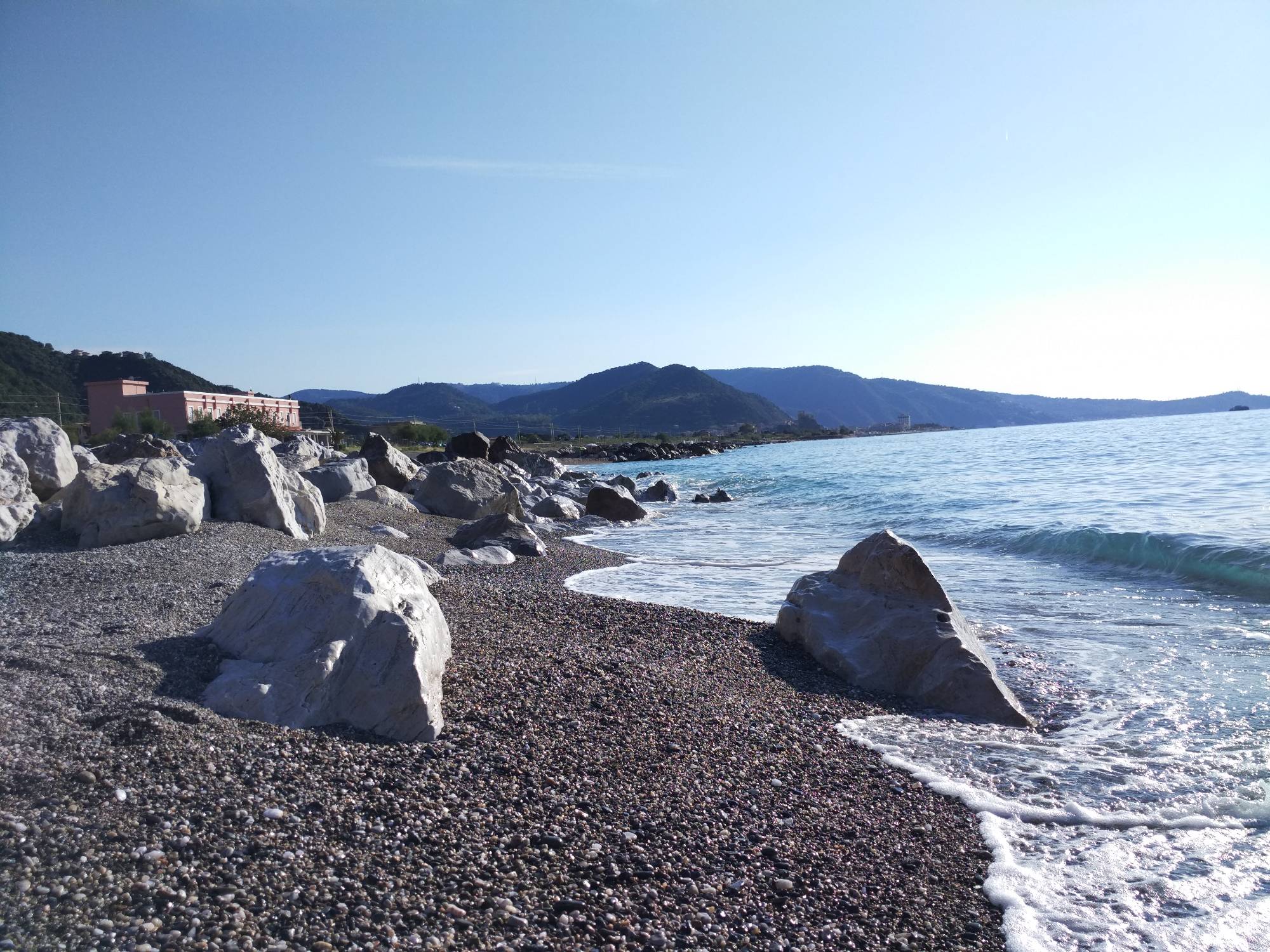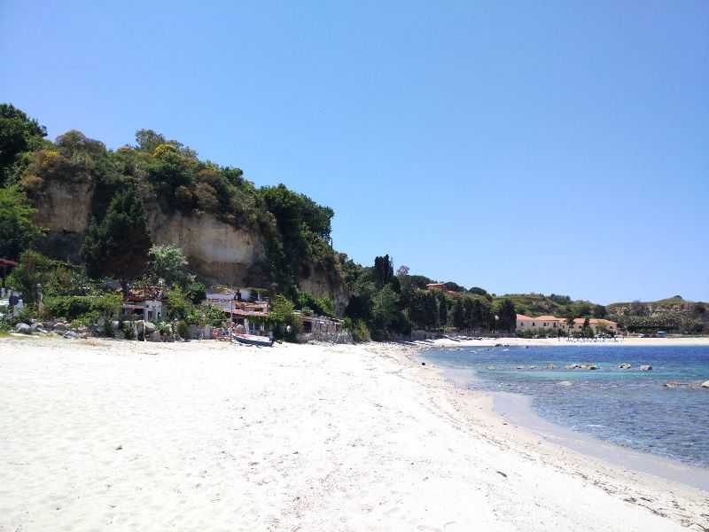 Po necelé hodině jízdy jsme ze silnice zahlédli úžasnou pláž. Bylo to v Sant,' Irene Torre Vecchia. Neodolali jsme :-)