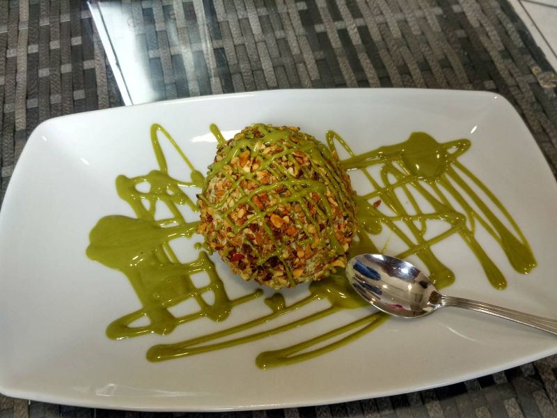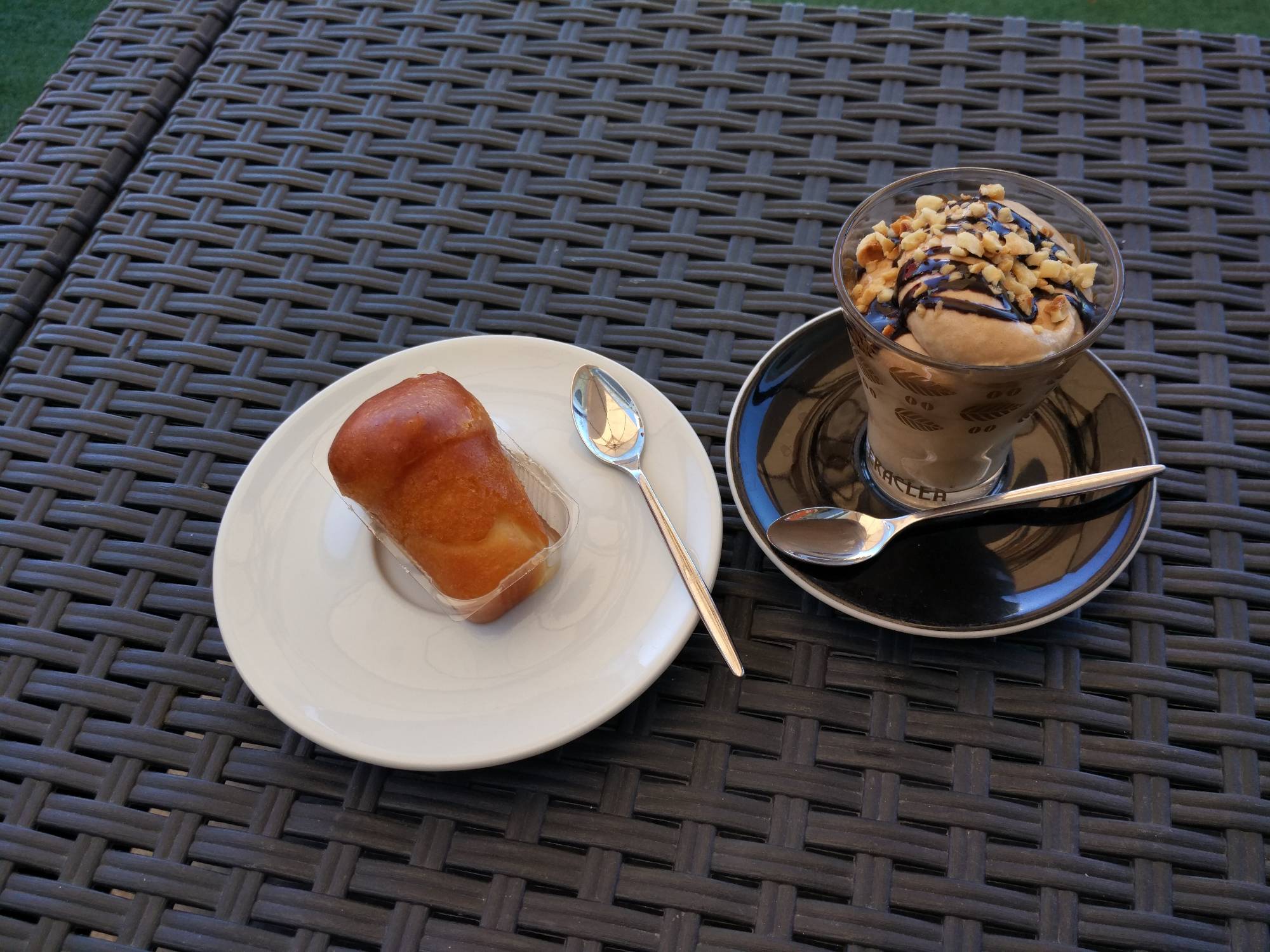 Objížďka nám zabrala hodinu. Stavíme v Ricadi a děláme malý nákup. A kávička také musí být. Tentokrát v podobě chlazeného krému a k tomu sladkost namočená v rumu.