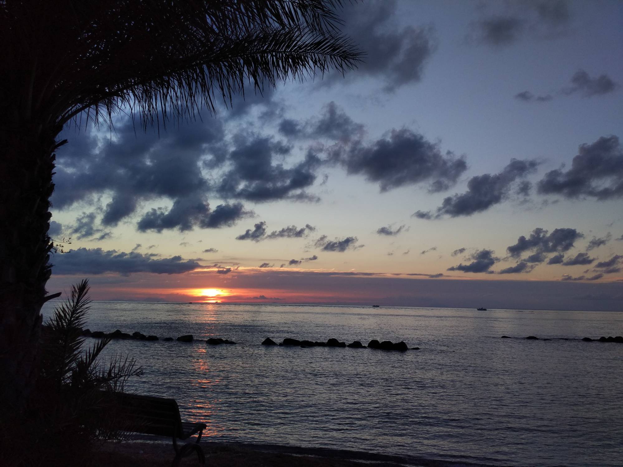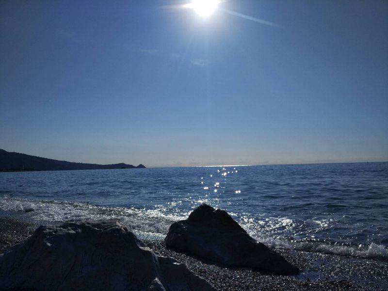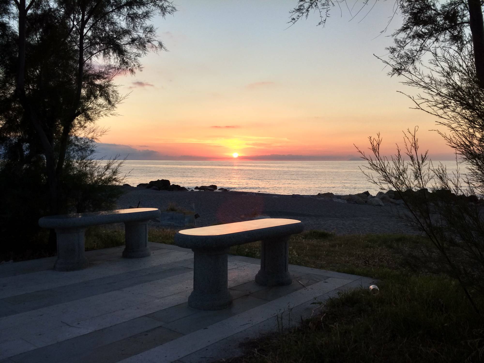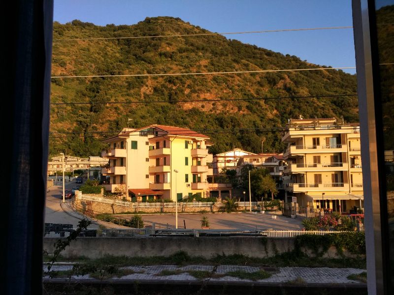 V osm hodin večer jsme dorazili do Favazzina, kde parkujeme přímo u moře. S pohledem z auta na západ slunce usínáme v autě.