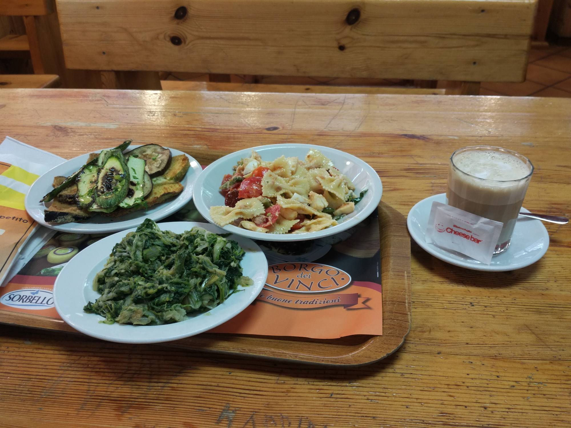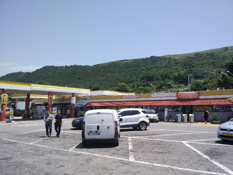 Přesun na sever byl po dálnici A2 pohodový. Hned u Catona sice byla kolona před dopravní nehodou, ale potom se už jelo velmi v klídku a zdarma. Po hodince jízdy stavíme na pumpě Eni dát si kávičku. Měli tam i restauraci a to jsme neodolali. Za mrzských osmnáct éček si dáváme tři mňamky a s napucnutými pupíky vyrážíme dál.