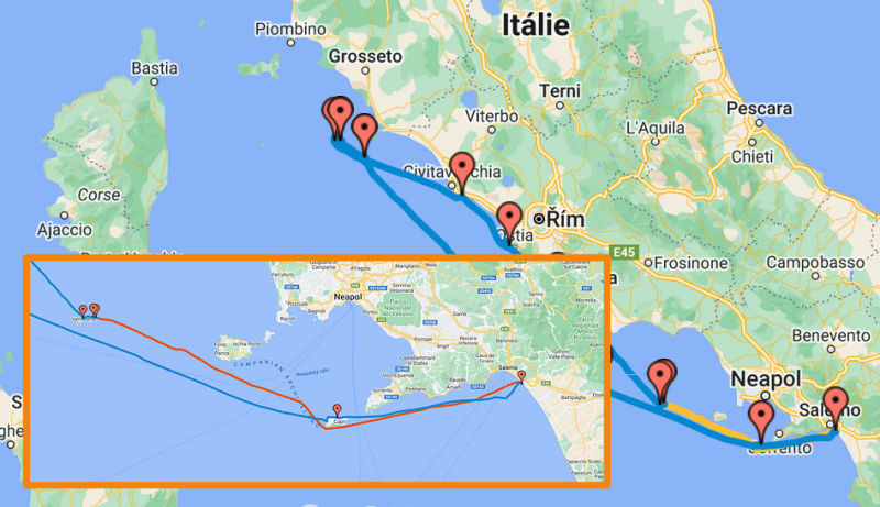Salerno - Faraglioni di Capri - Isola di Ventotene