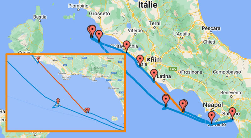 After sunset, the wind picked up, and near Anzio, it was blowing at 25 knots.