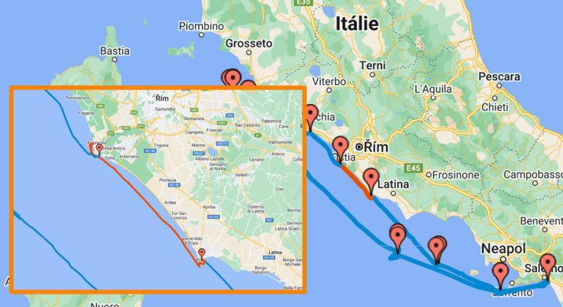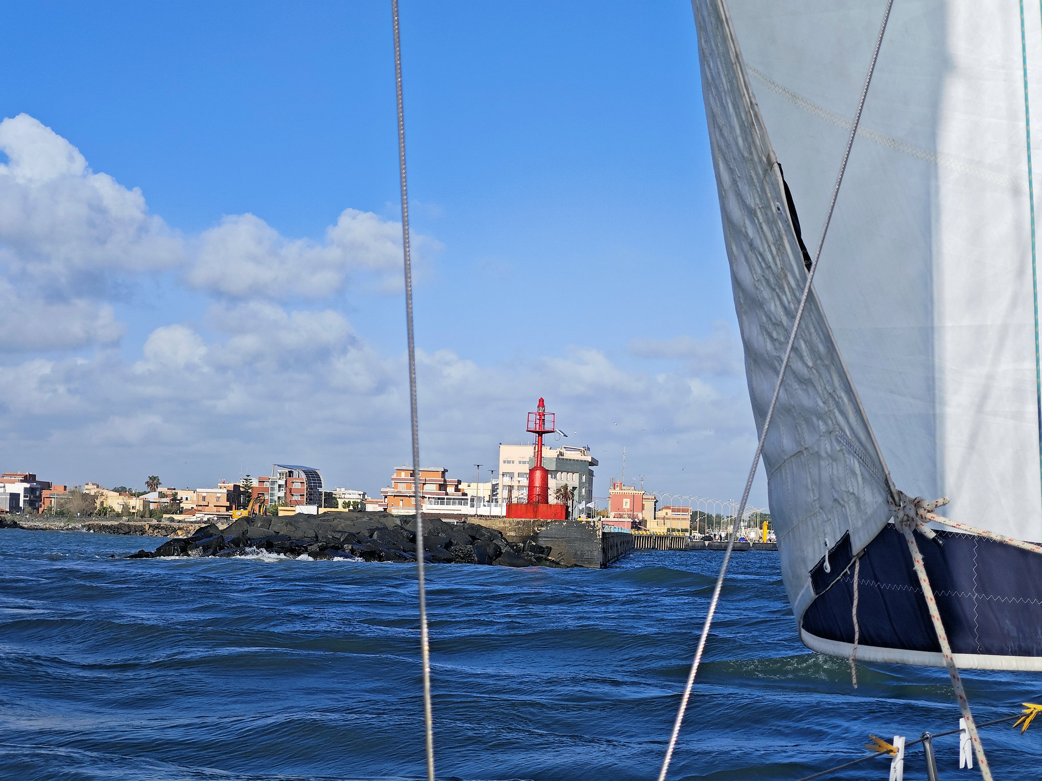 We departed from Anzio around noon, heading north. The next stop was Rome, specifically Fiumicino, right next to the airport.