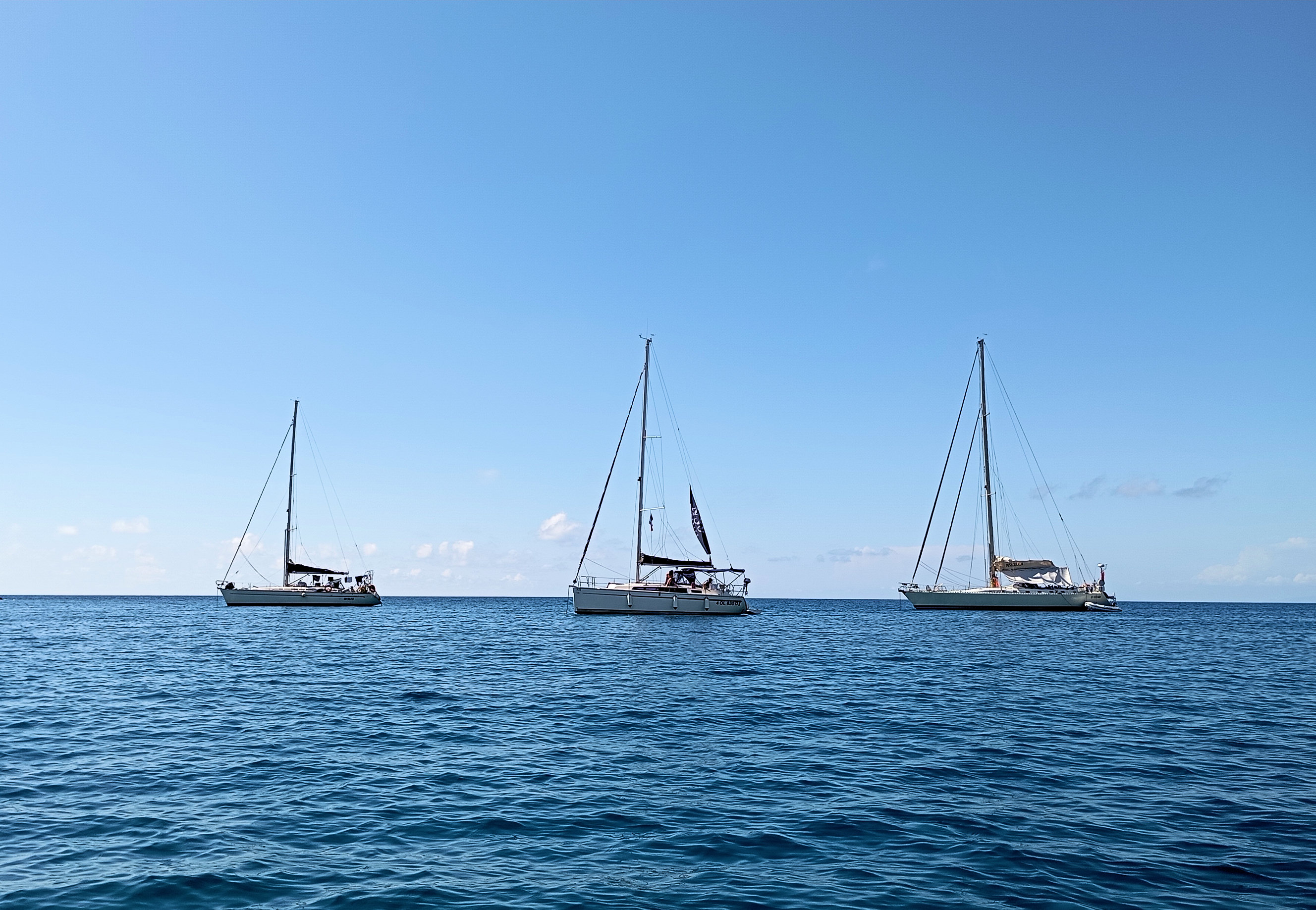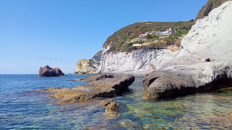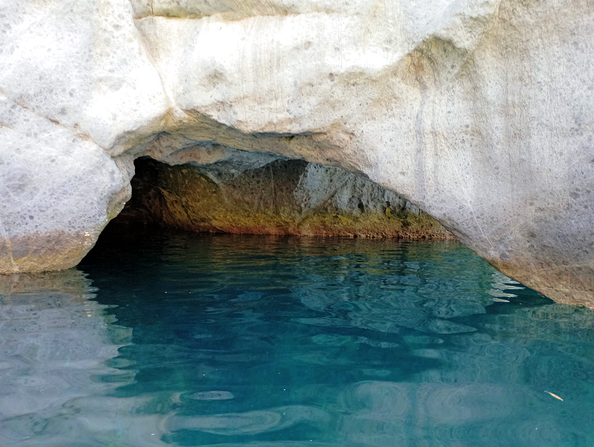 Cala di Feola is a magical bay. We let ourselves be lured by more holes in the rocks and the whole crew gradually sails through them on dinghies :-)