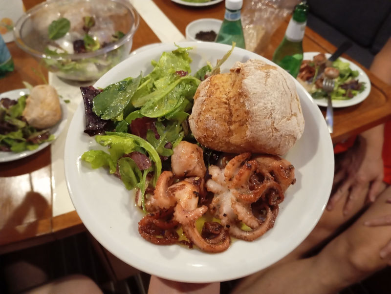 Na večeři jsme si uvařili výborné olihně a k nim byl salátek.