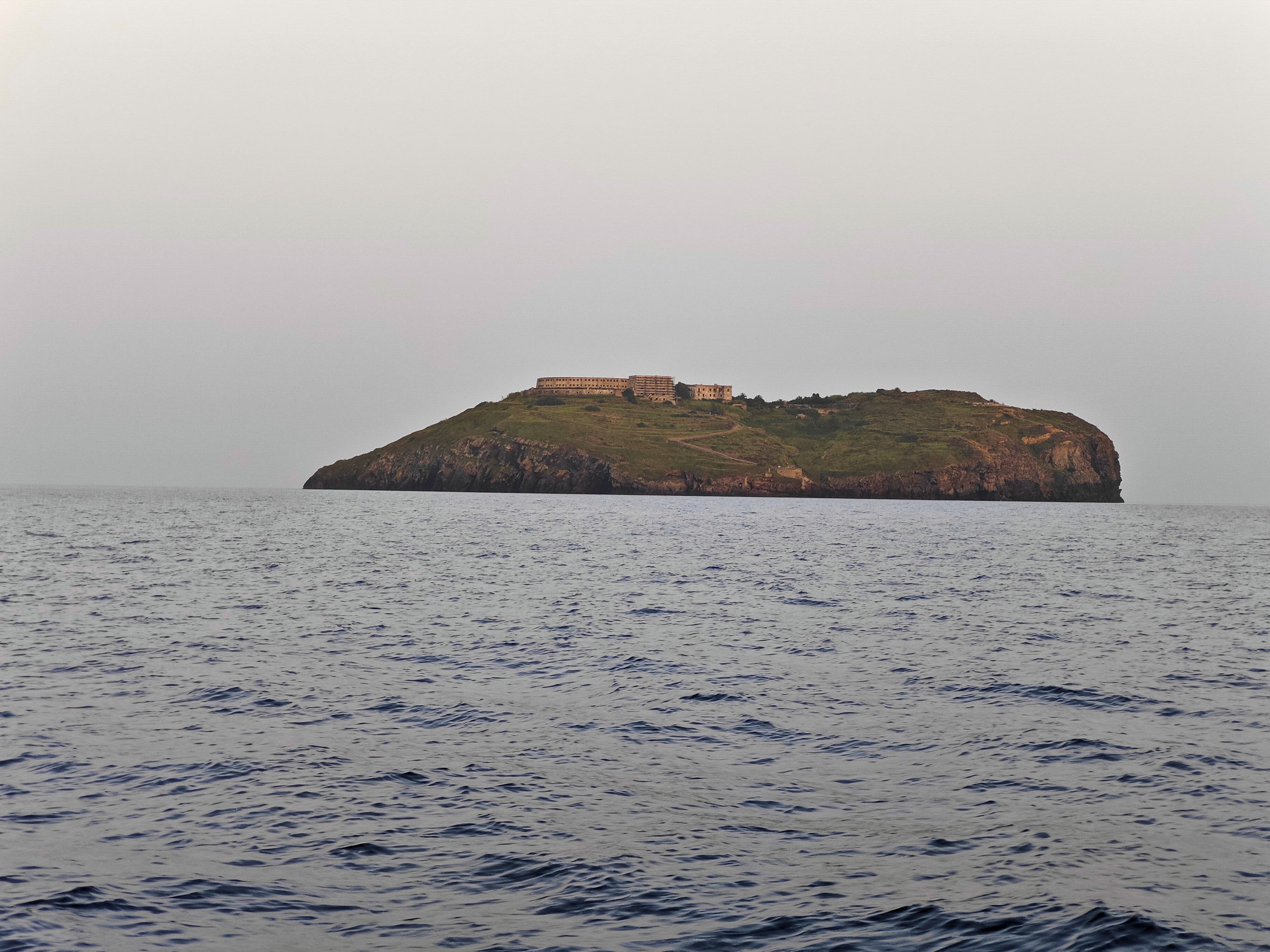 Kolem sedmé večer zpomalujeme před ostrovem Ventotene a zkoušíme chytat ryby.