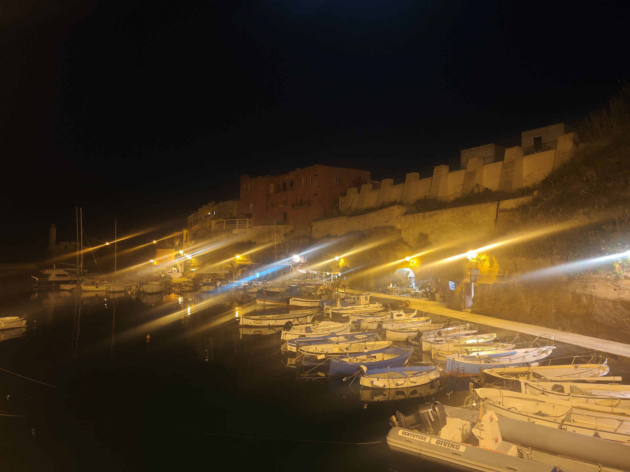 Za tmy vyrážíme na krátkou procházku a pak na výbornou večeři v původní staré marině Porto Romano.