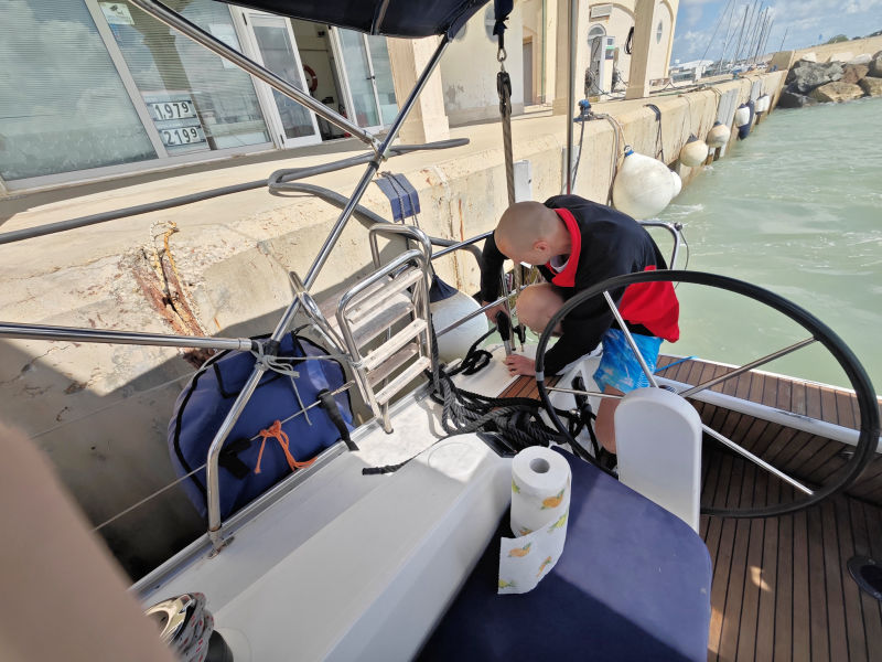 Před jedenáctou vyrážíme z Ostie. Ještě než vyplujeme na moře, bereme v ústí mariny naftu.