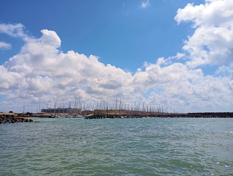 Z pilota se dočtete, že kotvení před Santa Marinella je díky bahnu a písku velmi v pohodě, neboť kotva potažmo řetěz na dně dobře drží. Jsme na pěti metrech a za celou noc jsme nespluli. Což je fajn. Nicméně jsme na návětrné straně, do pozdního večera fouká vítr, jedna vlnka následuje za druhou a s námi to houpe a houpe.