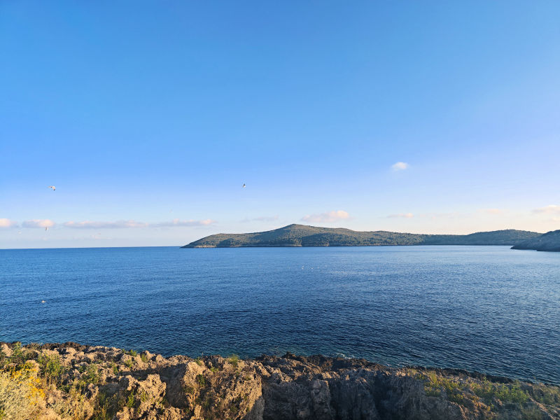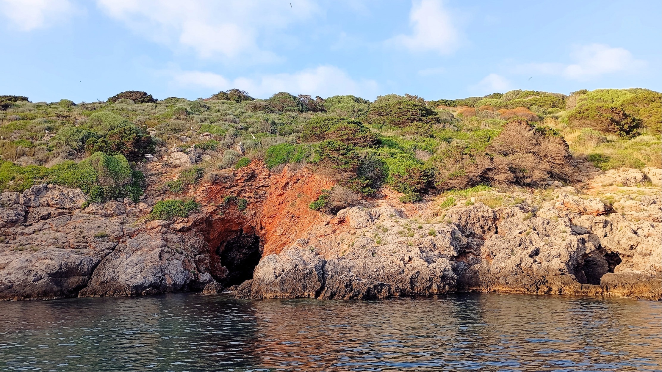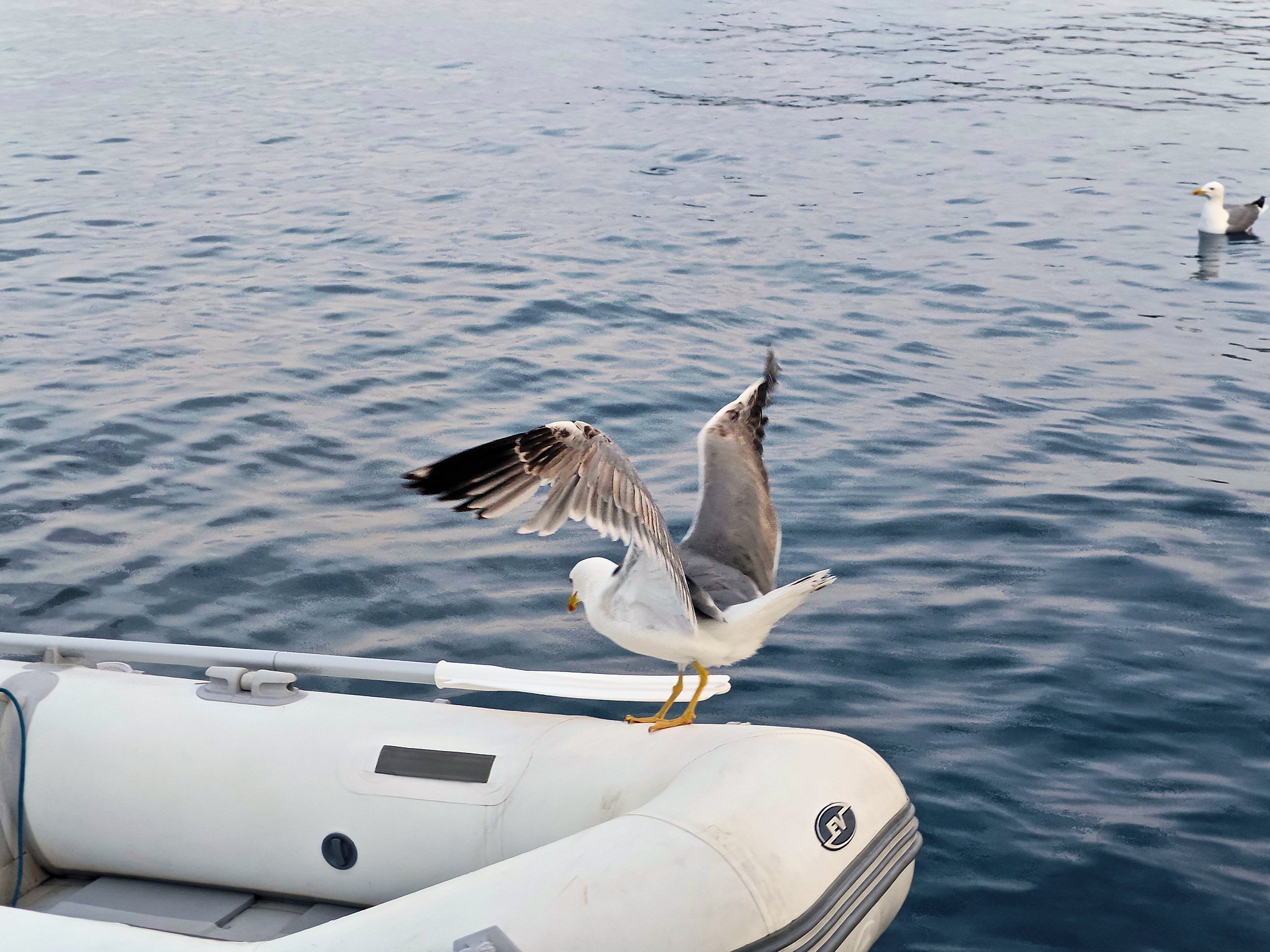 Vybíráme si severní část a ve společnosti kolonie racků kotvíme za rohem Cala Spalmatoi, tentokrát na dvě kotvy.
