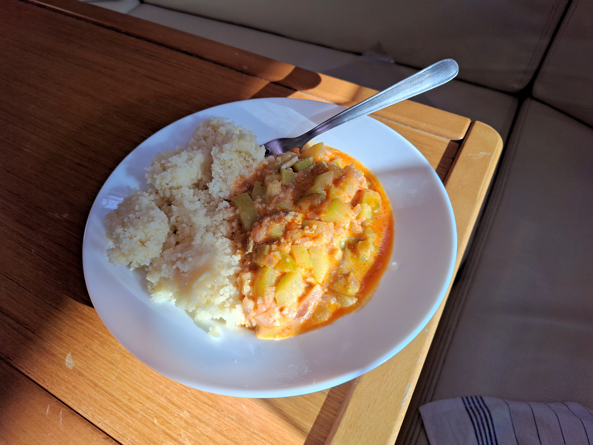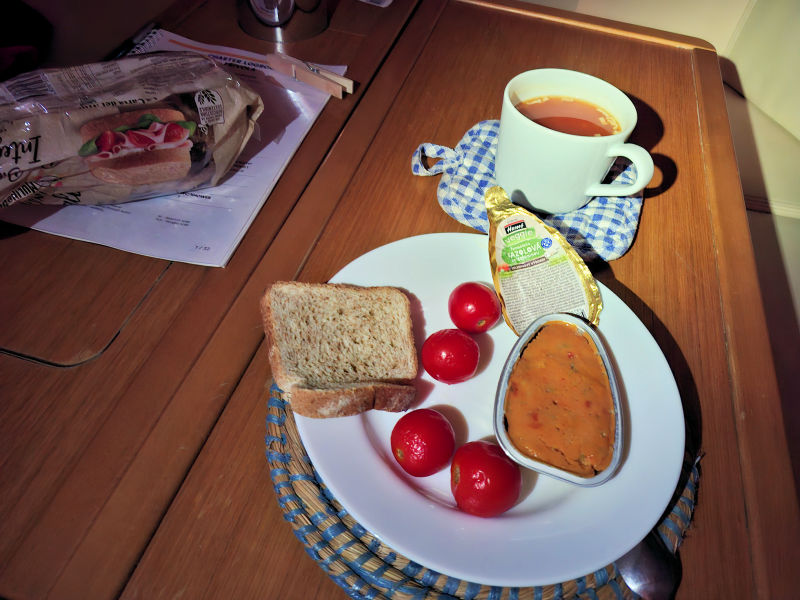 The anchor winch was still causing trouble, so raising the anchor was manual job.
