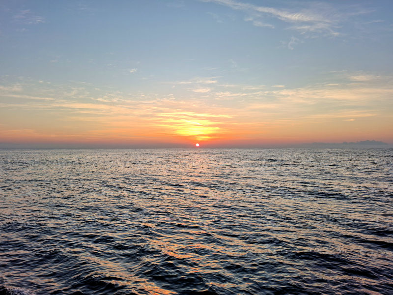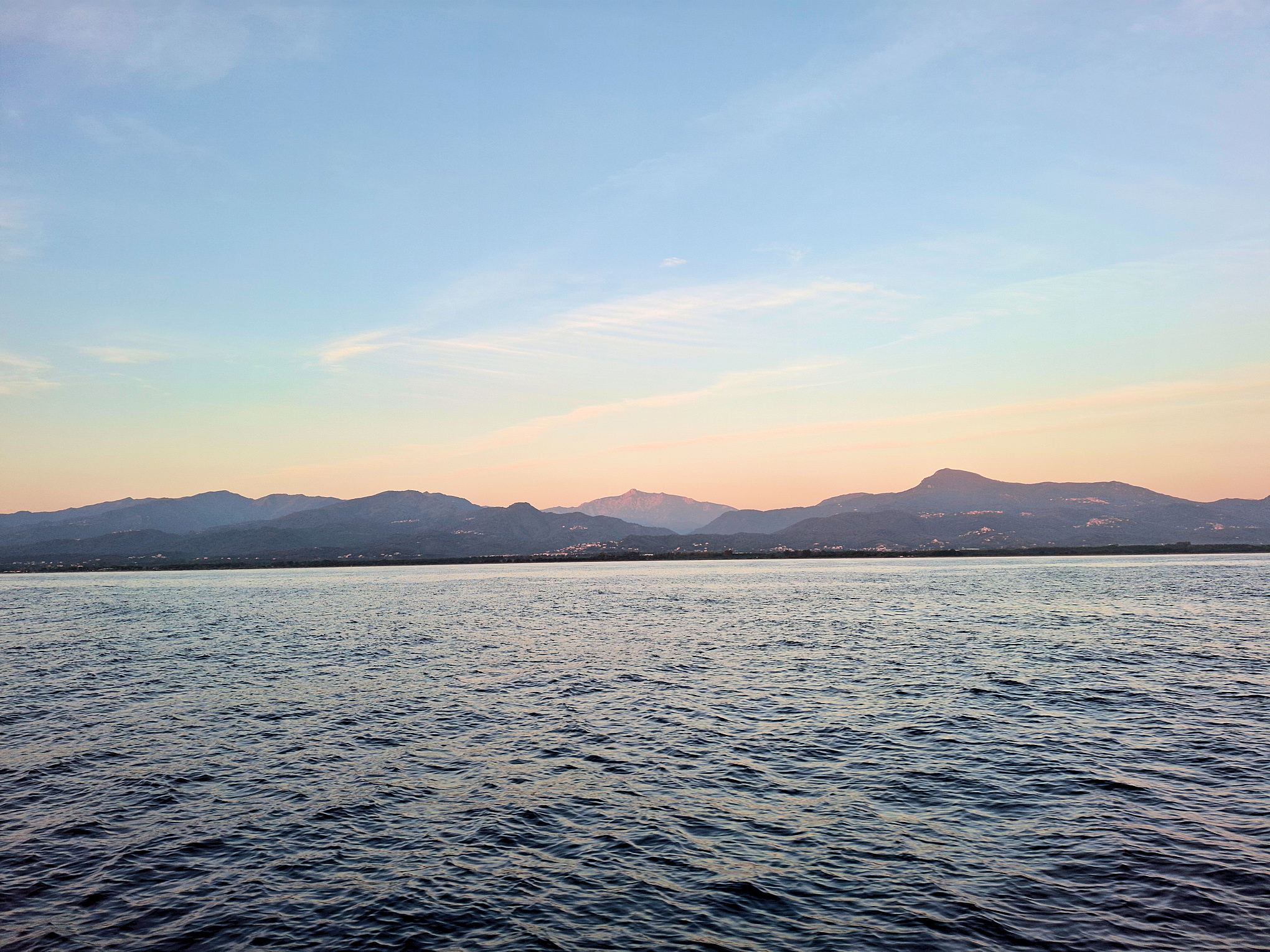 I passed Bastia while it was still dark. A few hours later, there was a fantastic sunrise under a clear sky and calm sea.