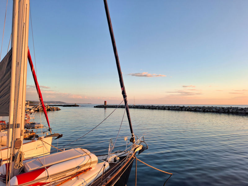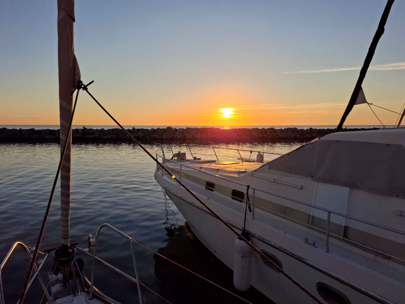 Around ten-thirty in the evening, a wave that tilted the boat threw me to the bottom of the cockpit... and so I set off again... course north... destination was Elba.