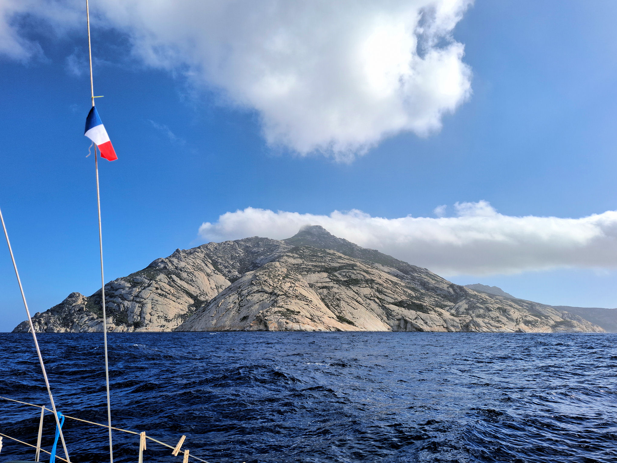 By around three o'clock I had also lowered the mainsail and for the last 2 Nm to the island, I was sailing only on engine.
