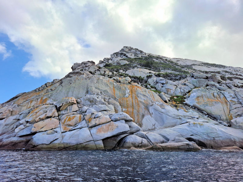 I headed to the northern leeward side of the island to look for a bay suitable for anchoring. However, I assessed all the ones I passed as "stuck anchor on a rocky bottom".