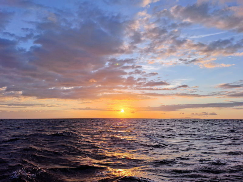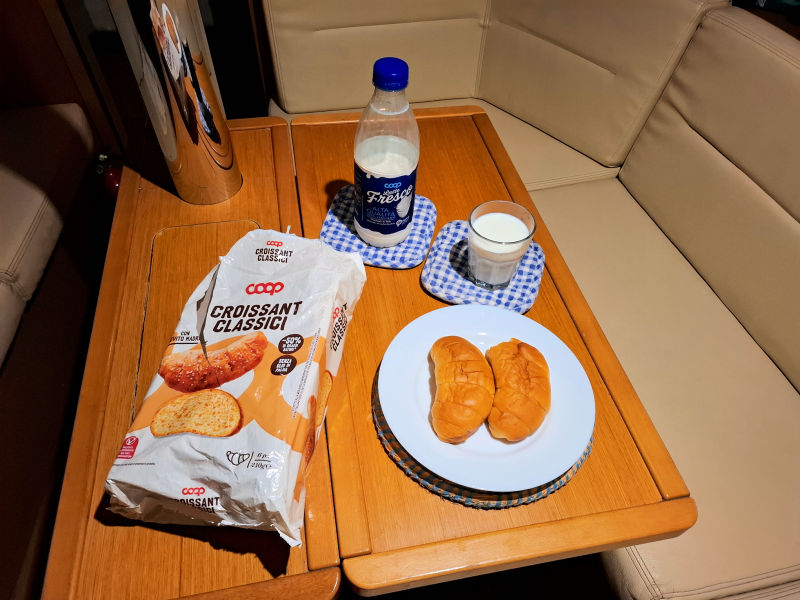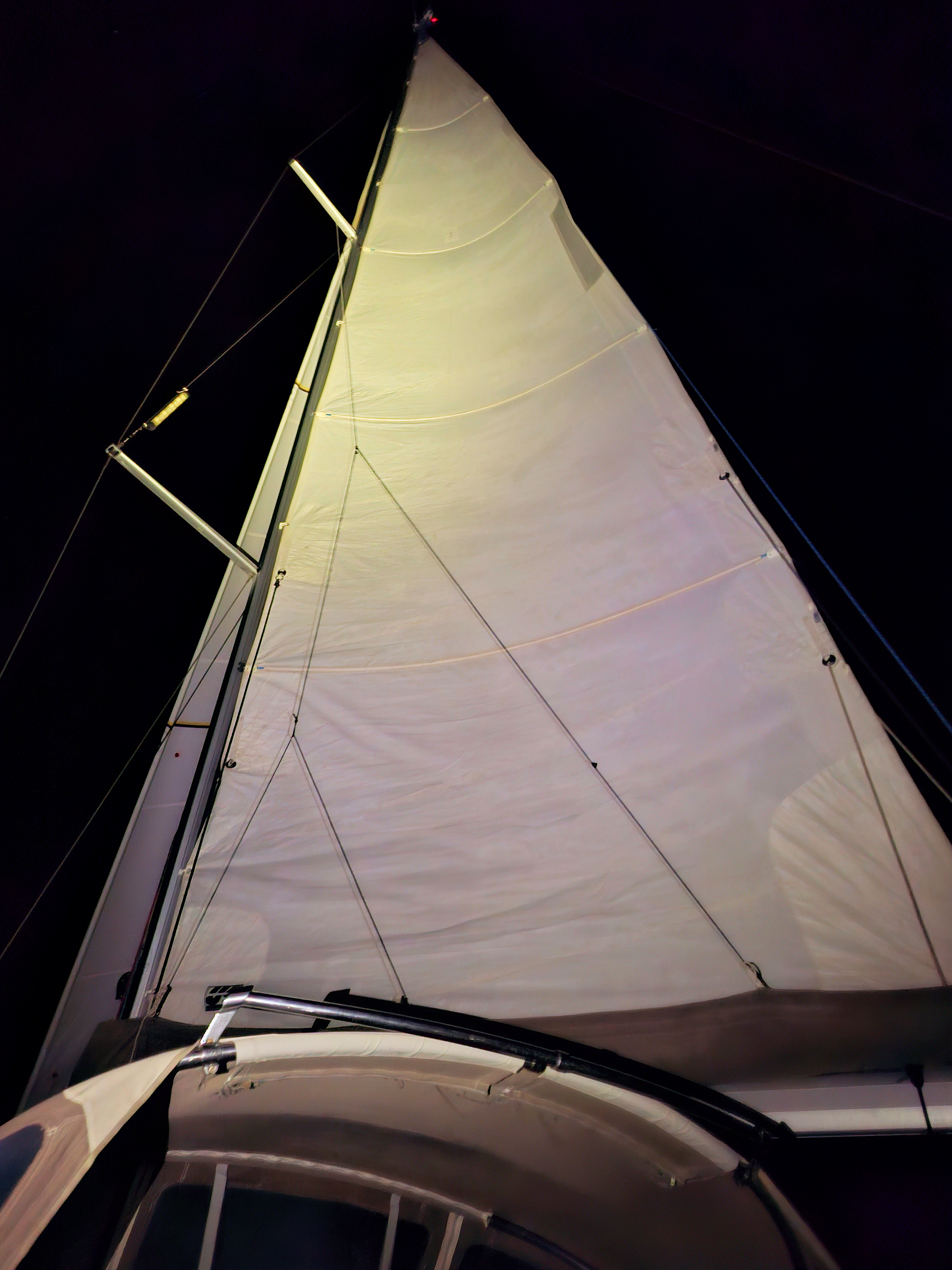 Woke up before half past two in the morning, breakfast. Half an hour later, I started the engine and raised the mainsail. That was still in the bay on calm water.