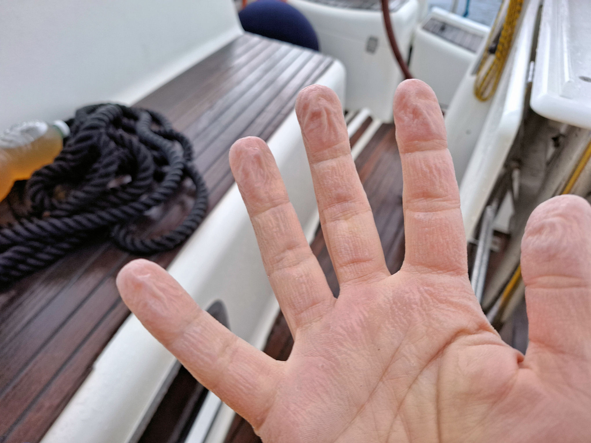 And already in the dark, I cleaned the anchor well and the anchor chain of mud.
