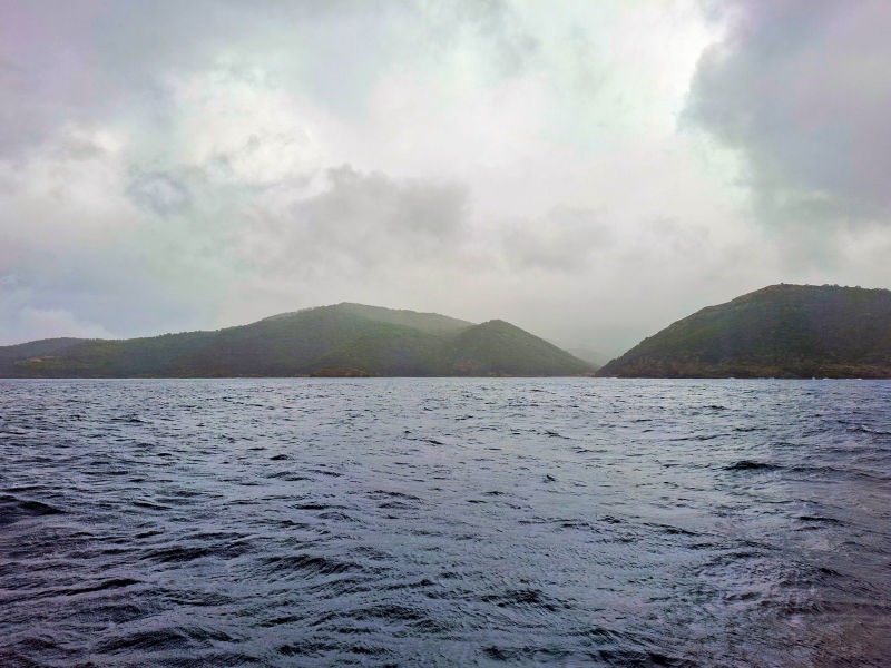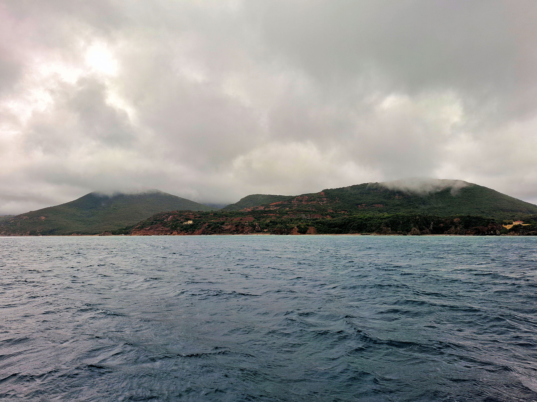 With short breaks, it rained and blew on and off for the entire journey. The pressure steadily fell or rather dropped from the morning's 1001.1 hPa to the evening's 992.7 hPa. I didn't see the sun all day and for a long time didn't see any boats either. And that struck me as strange. Fortunately, boats reappeared before Elba, so I felt I wasn't alone at sea again.