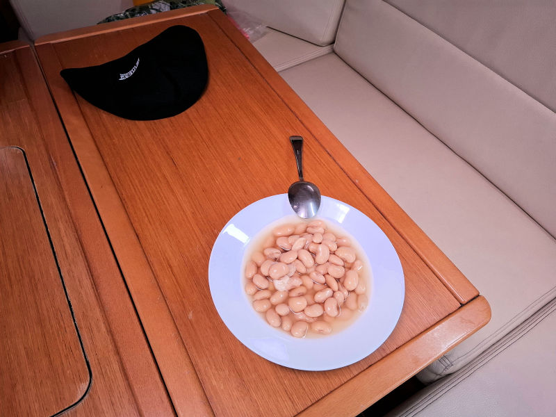 After dinner, I fed the fishes, but this time from the boat's supplies.