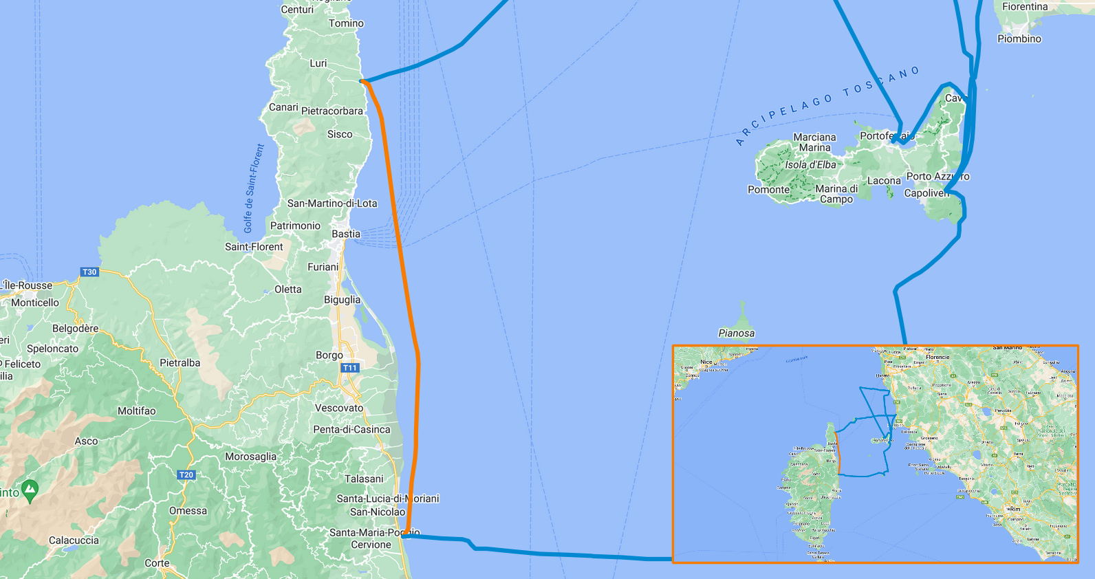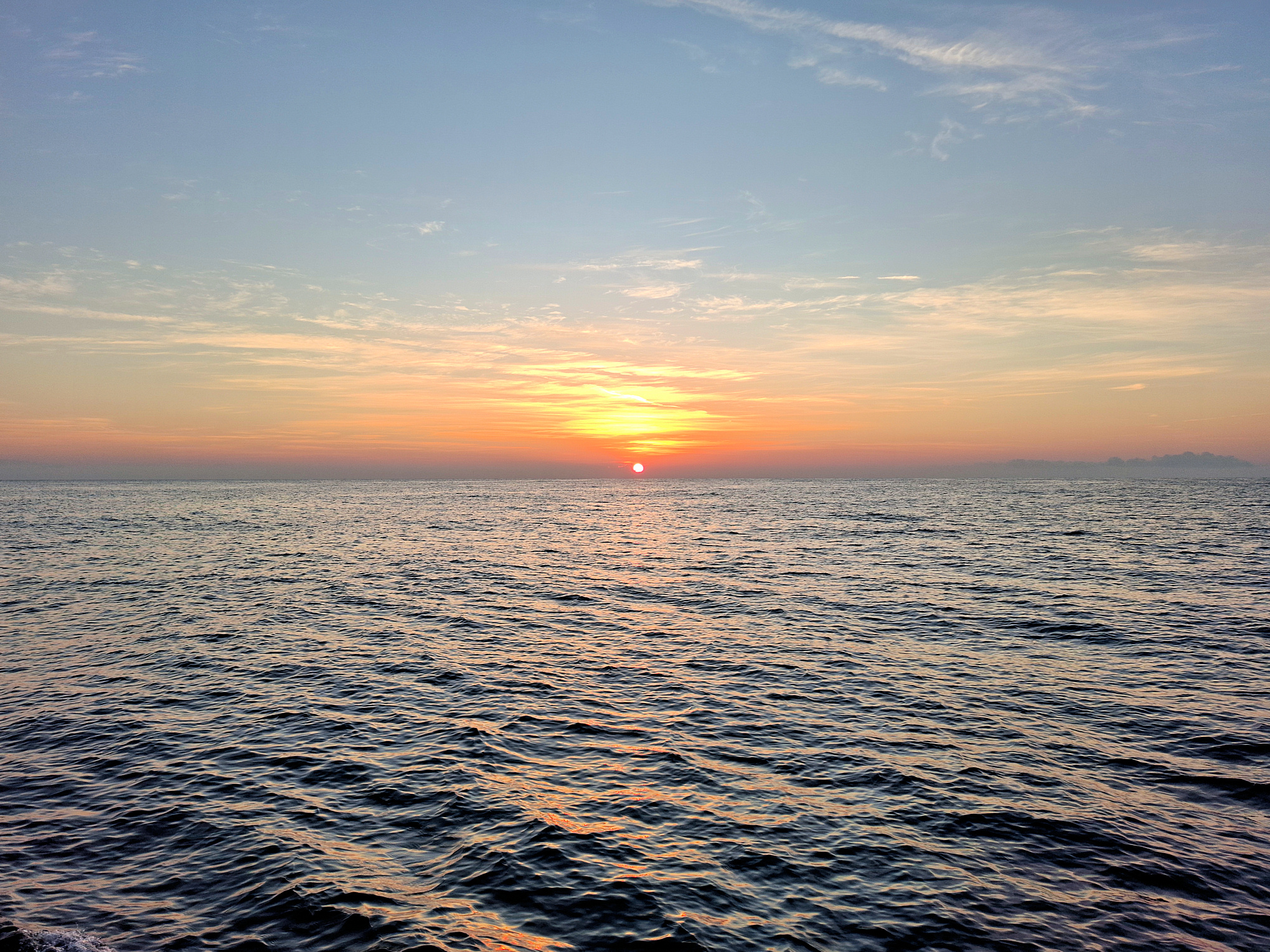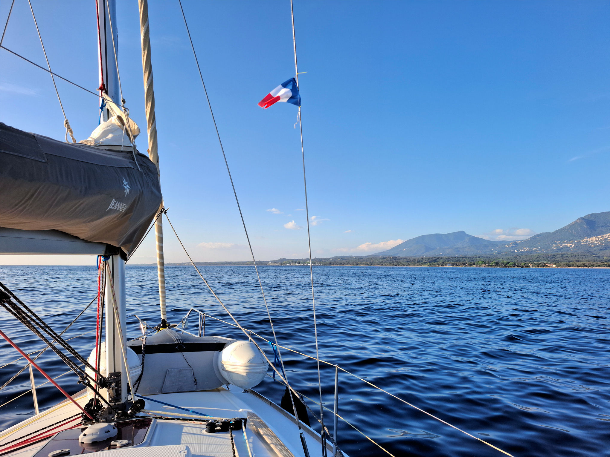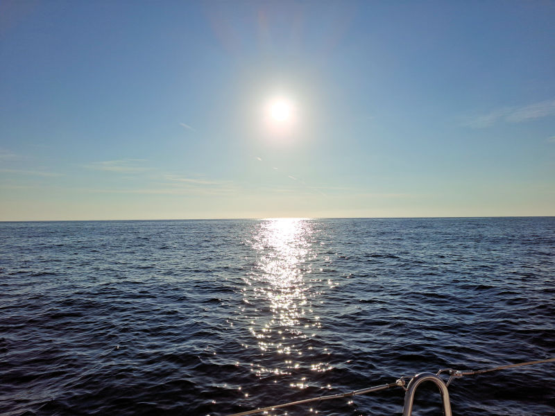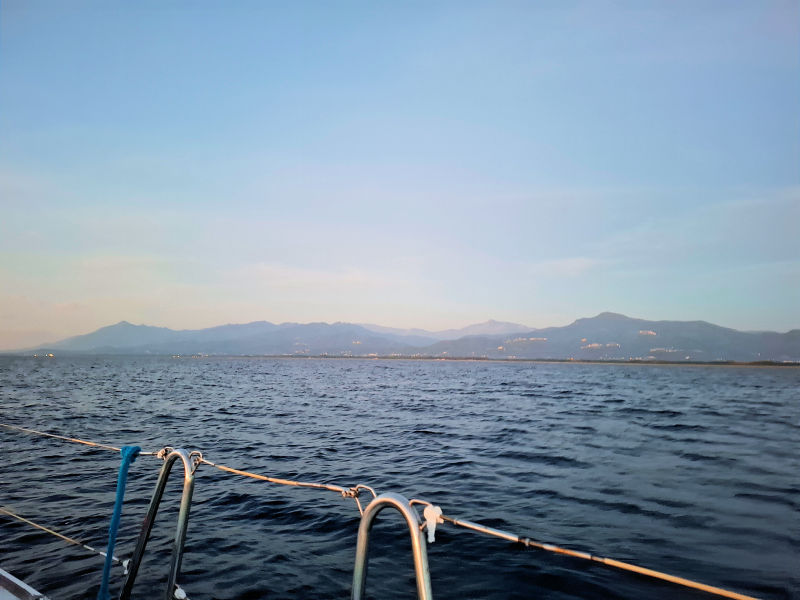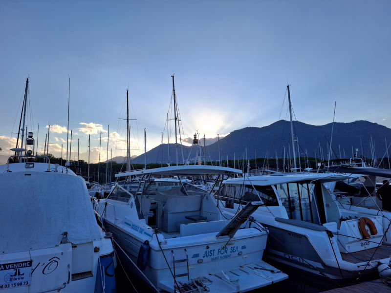 Ještě za tmy jsem minul Bastii. O pár hodin později byl parádní východ slunce za jasné oblohy a klidného moře.