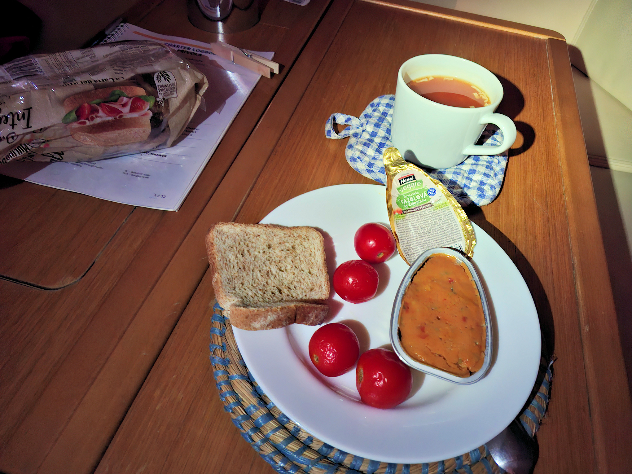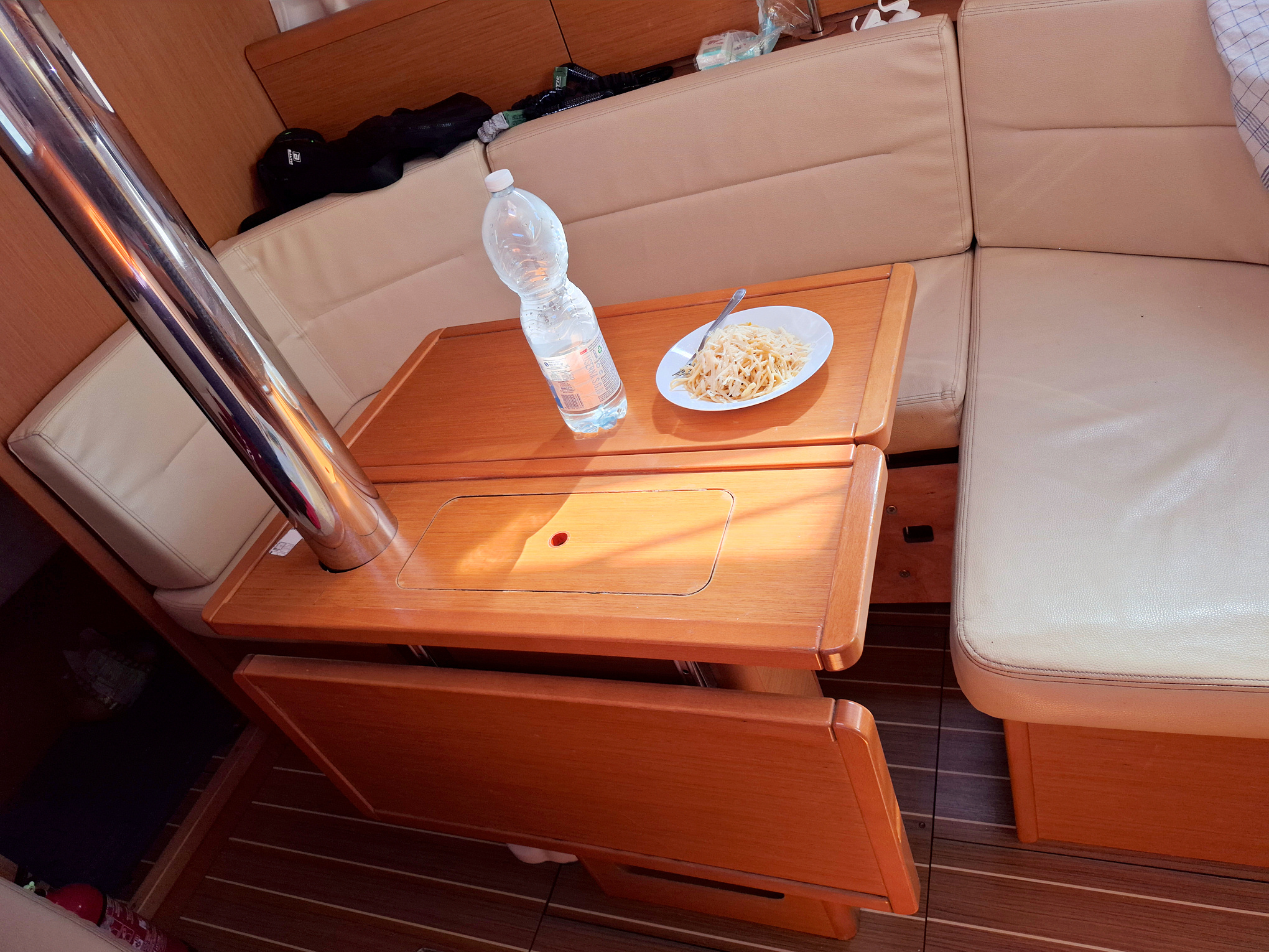 Večer jsem si skočil do restaurace v maríně, chvilku posedět a číst si knihu. Nealko pivo neměli, tak jsem si dal jen vodu.