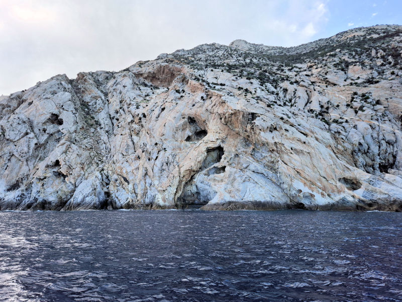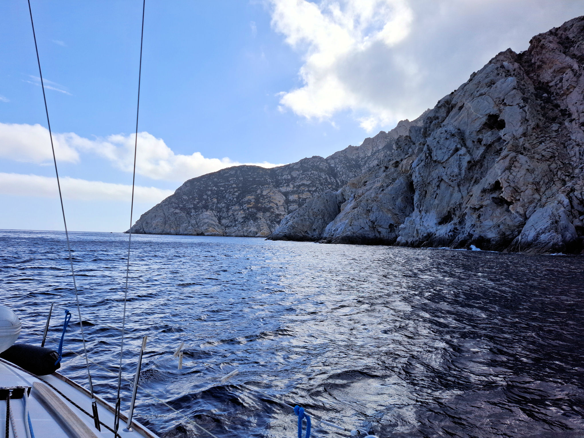 Vydal jsem se na severní závětrnou stranu ostrova, abych se podíval po nějaké zátoce příhodné k zakotvení. Nicméně všechny, které jsem proplul, jsem vyhodnotil jako "zaseknutá kotva na skalnatém dnu".