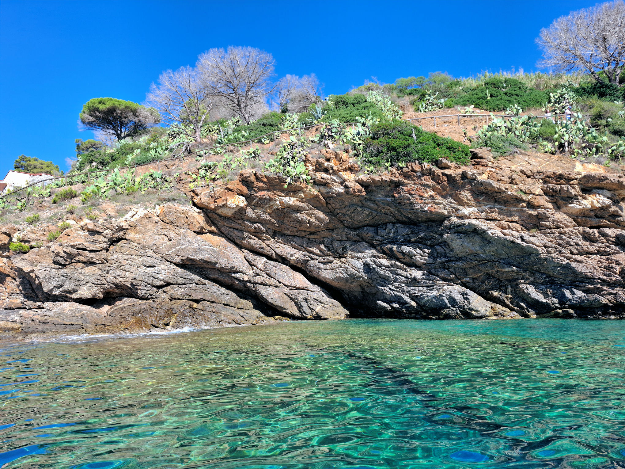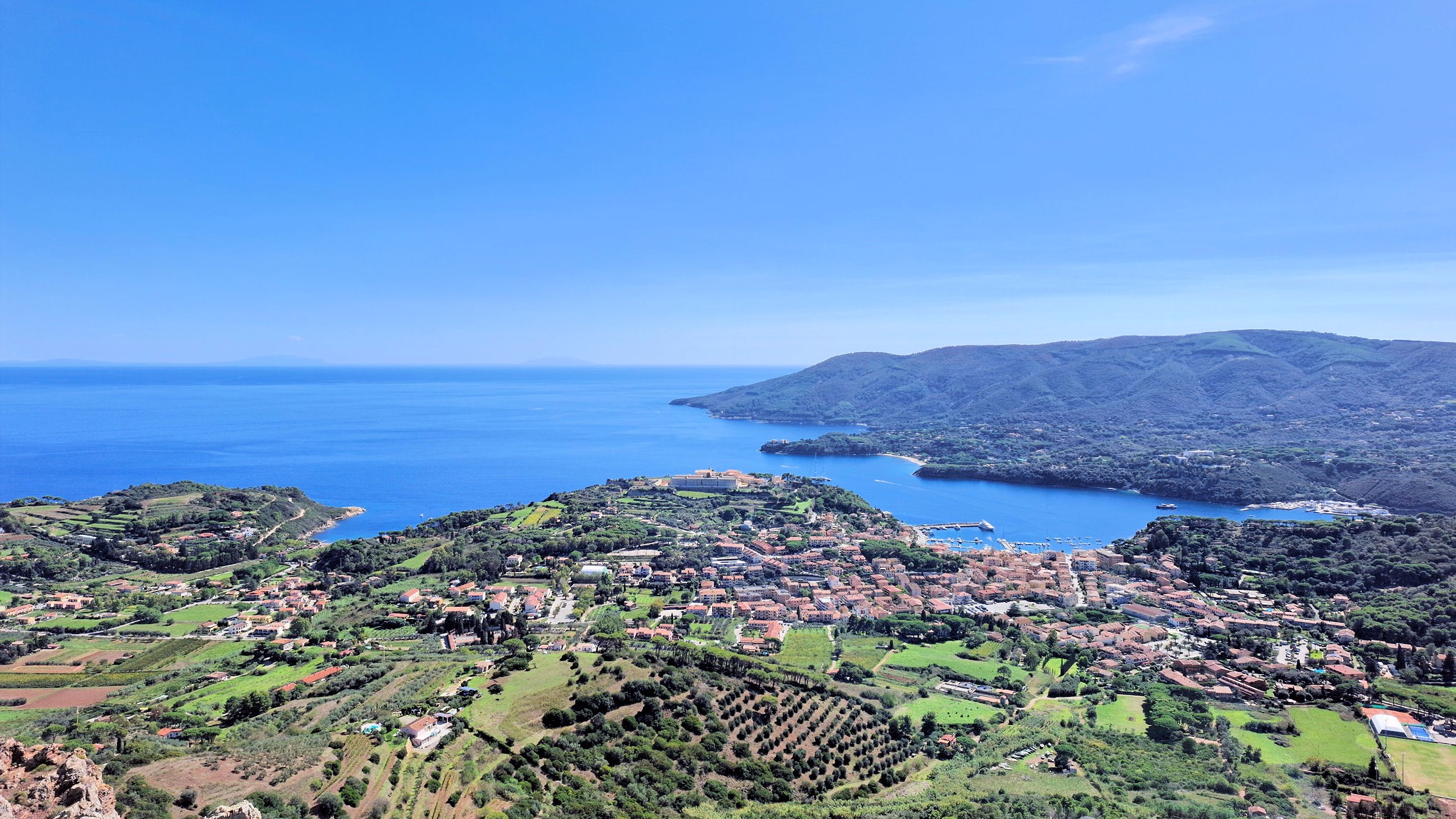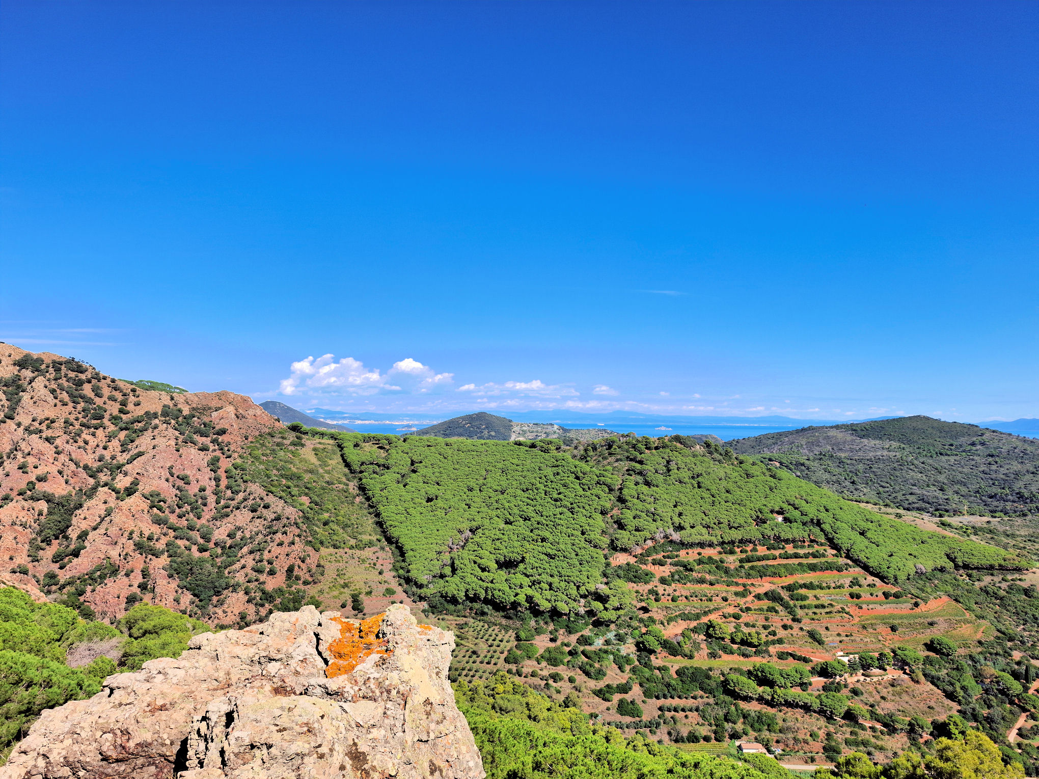 Ve městě jsem si dal výbornou zmrzku neboli gelato a pak už jsem stoupal vzhůru k Monte Mar di Capanna, která se tyčí 290 metrů nad zátokou. Na souši jsem ušel jen o něco málo více, než jsem naplul s dinghy na vodě.