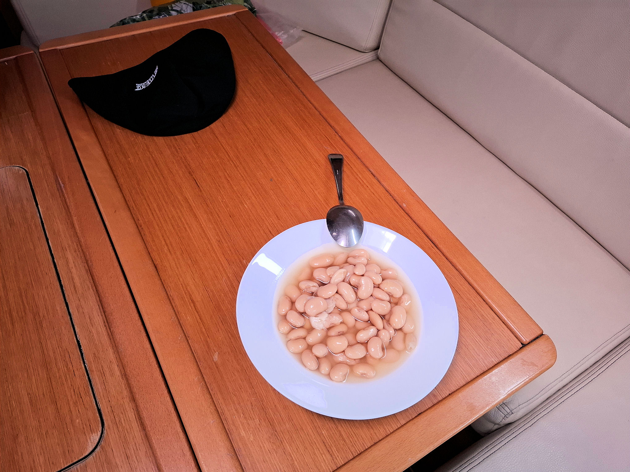 Po večeři jsem nakrmil rybičky, ale tentokrát z lodních zásob.