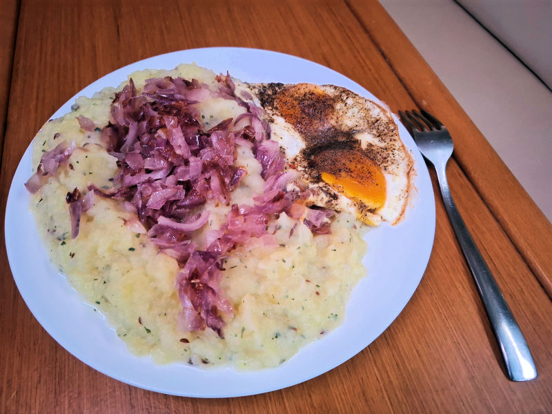 Brambůrky s volským okem a smaženou cibulkou byla myšlenka, do které jsem se chytil a celý den se jí nezbavil. Takže večer, byť unavený, jsem si ještě vařil.